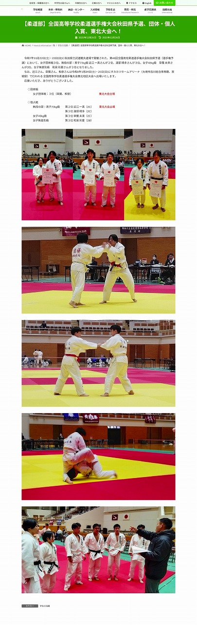 ÎáÏÂ7 ǯ10 ·î18 Æü¡ÊÅÚ¡Ë¡¦19 Æü¡ÊÆü¡Ë½©Åĸ©Î©ÉðÆ»´Û½ÀÆ»¾ì¤Ç³«ºÅ¤µ¤ì¤¿¡¢ÎáÏ£·Ç¯ ÅÙ½©Åĸ©¹âÅù³Ø¹»¿·¿Í½ÀÆ»Âç²ñ¡Ê°Ê²¼¡¢Á´¸©¿·¿ÍÀï¡Ë¤Ë¤ª¤¤¤Æ¡¢½÷»Ò78kg µé ÏÂÀô ºÌ²Æ¤µ¤ó¤¬Í¥ ¾¡¡¢½÷»Ò48kg µé ÁðÆå ̤Í褵¤ó¤¬3 °Ì¤È¤Ê¤ê¤Þ¤·¤¿¡£Á´¸©¿·¿ÍÀï¤Î½÷»Ò¸Ä¿Í¤ÇÍ¥¾¡¤·¤¿¤Î¤Ï¡¢ Ëܹ»½é¤È¤Ê¤ê¤Þ¤¹¡£ 11 ·î22 Æü(ÅÚ)¡¦23 Æü(Æü)¤Ë½©Åĸ©Î©ÉðÆ»´Û¤Ç¹Ô¤ï¤ì¤ëÂè48 ²óÁ´¹ñ¹â¹»½ÀÆ»Áª¼ê¸¢Âç²ñ½©ÅÄ ¸©Í½Áª¤Ë¸þ¤«¤Ã¤Æ¡¢Â¾¤ÎÉô°÷¤È¤È¤â¤ËÃÃÎý¤·¤Æ¤¤¤¤¿¤¤¤È»×¤¤¤Þ¤¹¡£ ±þ±ç¤¤¤¿¤À¤¡¢¤¢¤ê¤¬¤È¤¦¤´¤¶¤¤¤Þ¤·¤¿¡£